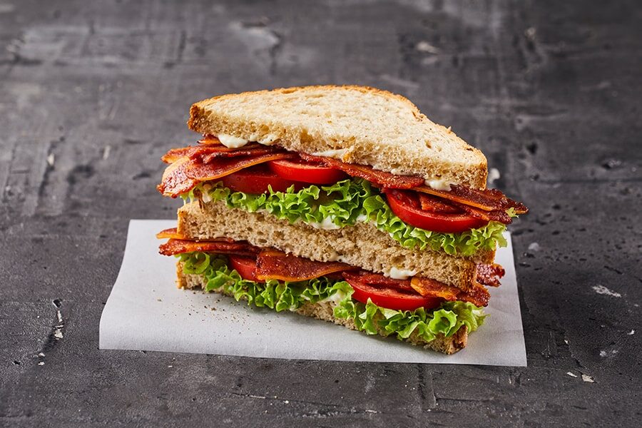 Bacon, Lettuce & Tomato The King of Sandwiches Our No Added Nitrite bacon with sliced tomato, fresh lettuce and mayonnaise served on granary bread with cracked black pepper to garnish. Related Products
