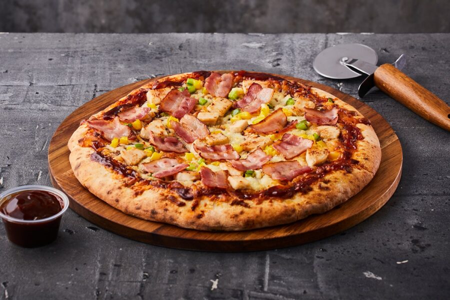 Slice, Slice Baby A slice of heaven Our quarter rashers coupled with sliced cooked chicken, with diced yellow and green peppers and BBQ sauce on a sour dough base. Related Products